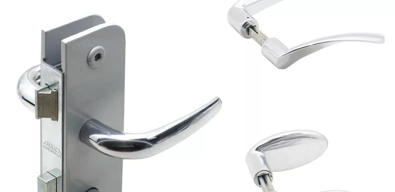 Temos ferragens para vidro prontas para comercialização, consulte-nos sobre disponibilidade de cores e modelos.